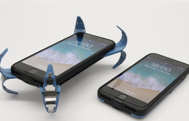 El protector fue diseñado por Philip Frenzel, un estudiante de ingeniería en la Universidad de Aalen en Alemania, después de cuatro años de trabajo. Frenzel ideó el diseño después de que la pantalla de más de uno de sus celulares se rompiera por alguna caída, le dijo a la emisora pública Südwestrundfunk. Los brazos flexibles están ocultos dentro de cada esquina de la elegante carcasa y sólo se despliegan cuando los pequeños sensores que lleva dentro detectan que el teléfono está en caída libre.