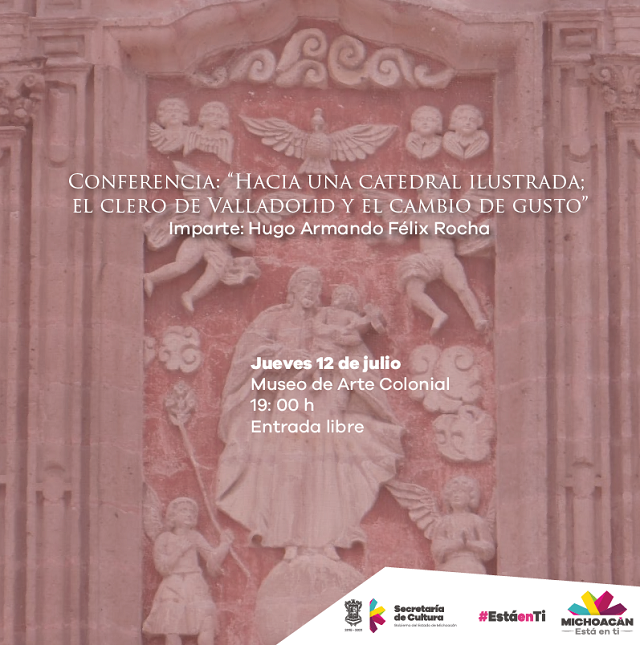 “Hacia una catedral ilustrada: el clero de Valladolid y el cambio de gusto”, es el nombre de la conferencia que Hugo Armando Félix Rocha ofrecerá este 12 de julio, a las 19:00 horas, en el Museo de Arte Colonial, dentro del ciclo De las artes y los oficios en el Michoacán Colonial.