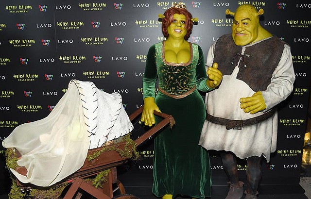 La supermodelo y presentadora de TV se vistió como la princesa Fiona de Shrek ayer para su 19na fiesta anual de Noche de Brujas.