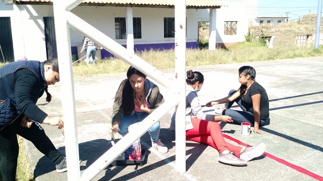 Estudiantes del Colegio de Estudios Científicos y Tecnológicos del Estado de Michoacán (CECyTEM), del CEMsAD (Centro de Educación Media Superior a Distancia) de la Tenencia de Santiago Undameo, en coordinación con el Instituto de la Juventud Moreliana, trabajaron en la limpieza, corte de césped, pintura interior, delineado de la cancha de básquetbol, pintura en gimnasio y porterías del llamado “Centro del Saber”.