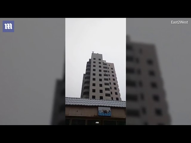 Medios locales indican que los testigos, entre ellos su madre, animaban a Bogdan a lanzarse para probar el improvisado paracaídas y presumir el reto viral en redes sociales.