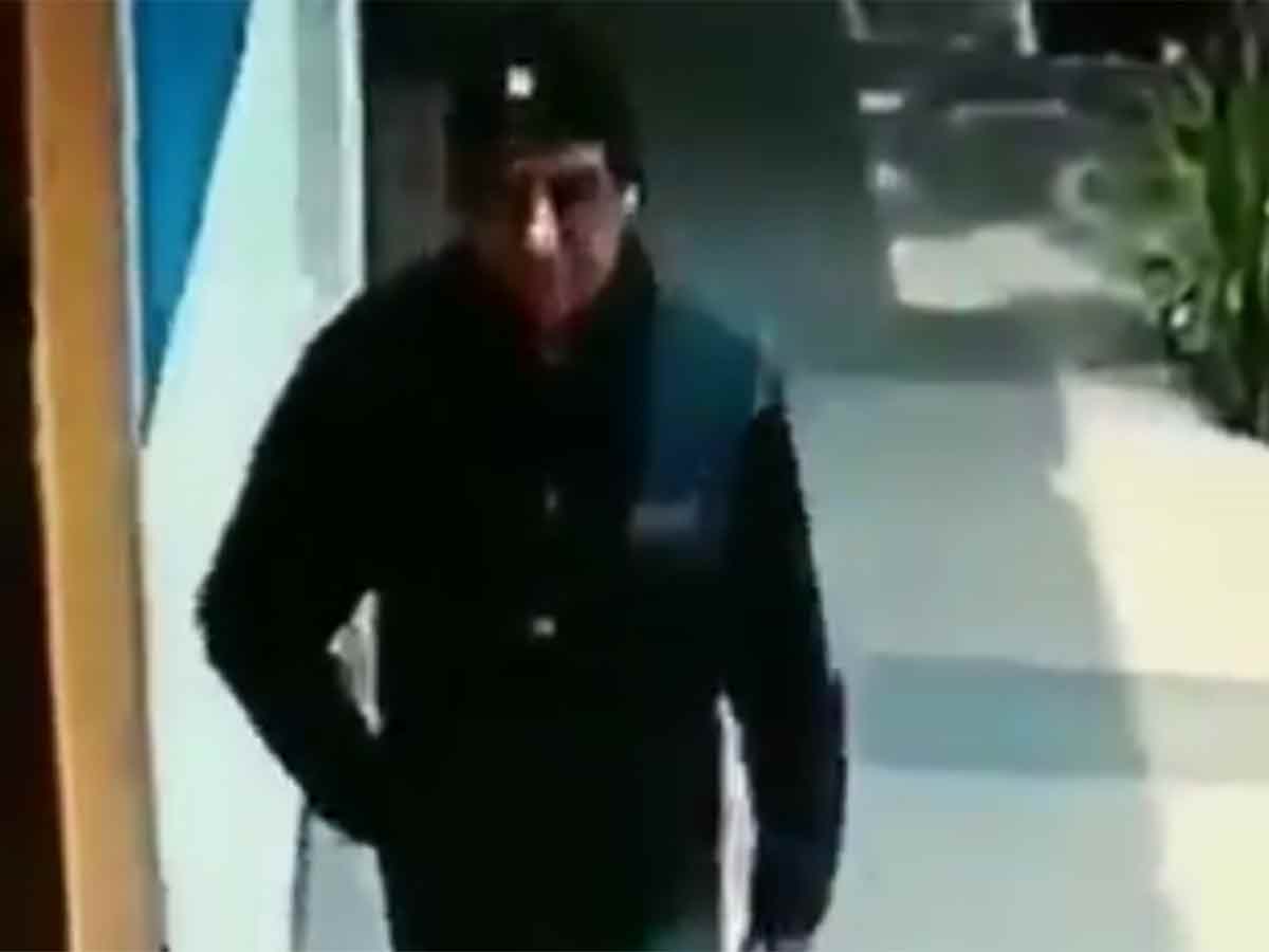 Tras ser frustrado el asalto, el ladrón camina en dirección opuesta. Su rostro fue captado por una cámara de seguridad que captó los hechos.