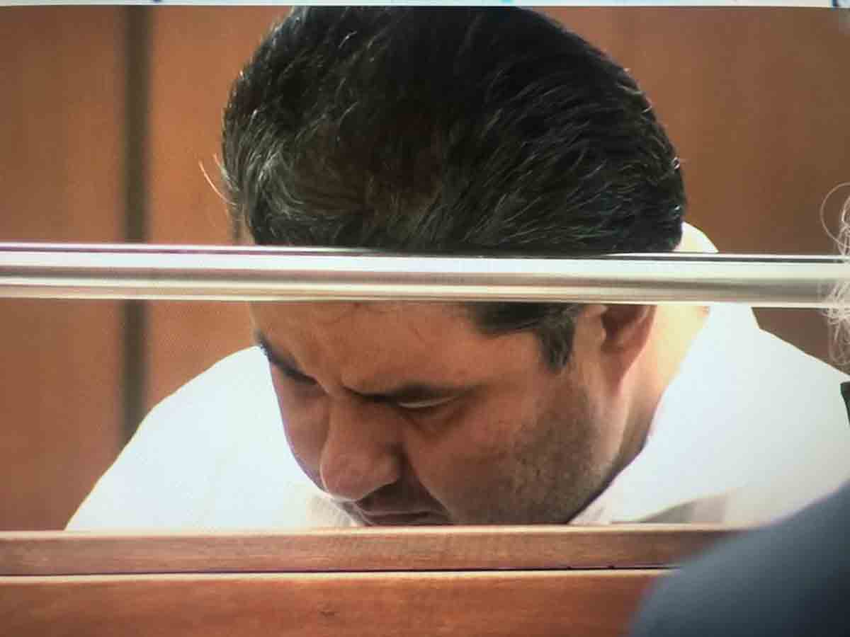 En las imágenes se le puede ver vestido con una playera blanca y con la cabeza agachada.