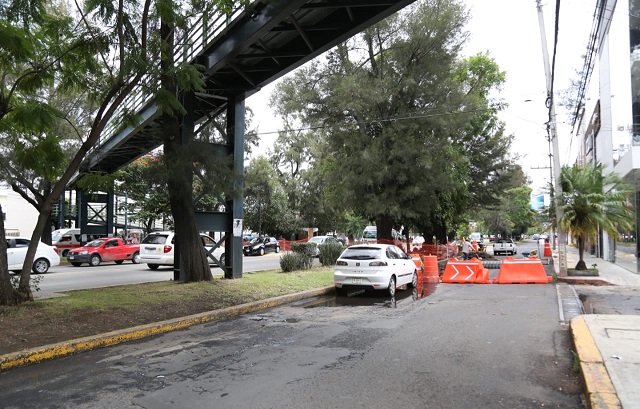 La Secretaría de Seguridad Pública (SSP), mantiene un dispositivo de movilidad y vigilancia frente al Instituto Mexicano del Seguro Social (IMSS), por la construcción de un paso peatonal incluyente en avenida Camelinas.