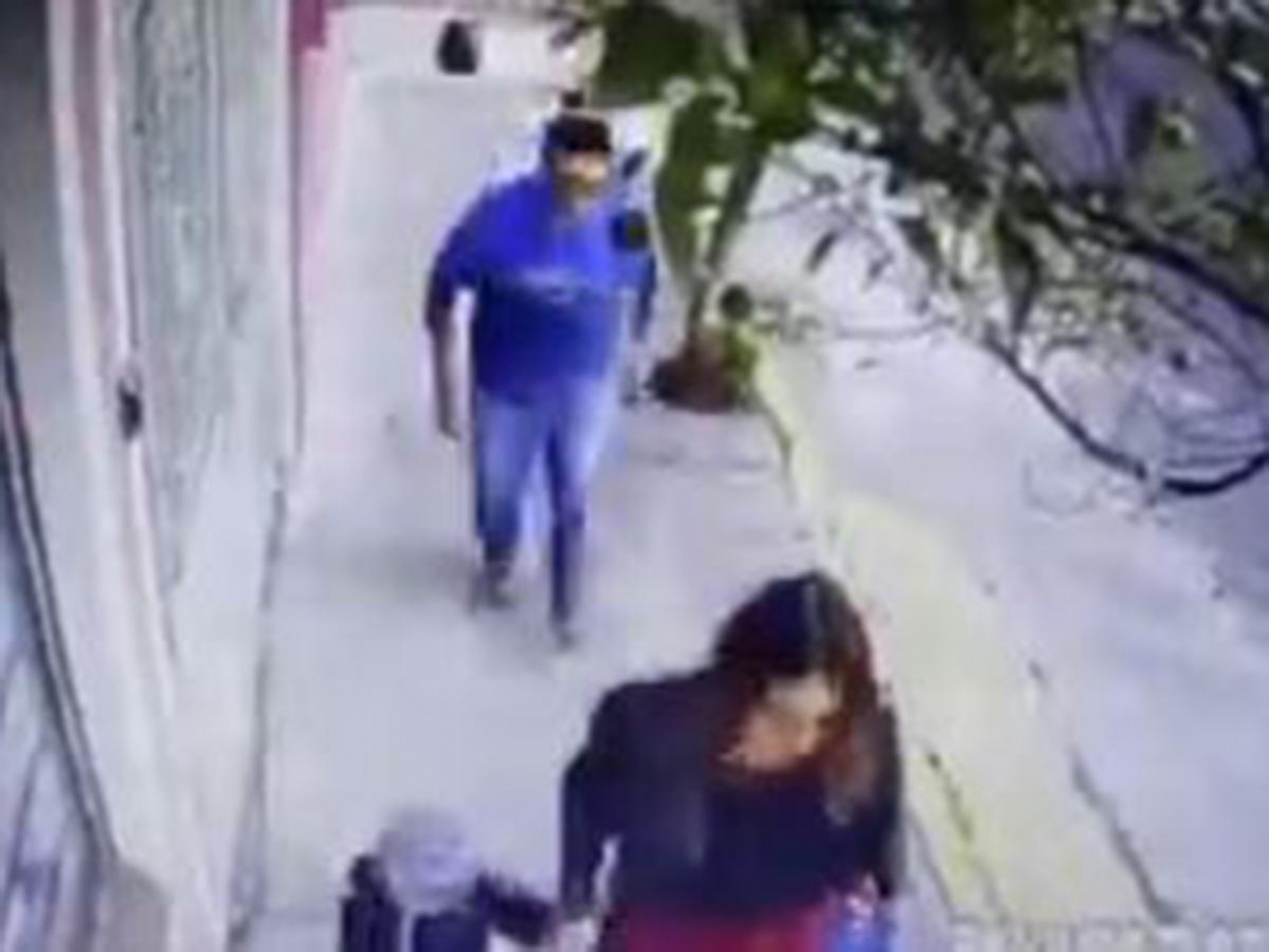 En las imágenes aparece el pervertido agrediendo a una mujer que estaba caminando junto a un niño.