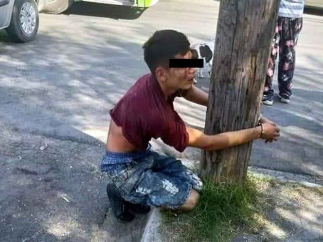 Vecinos de la colonia Provelión San Bernabé ubicada en Monterrey, golpearon y ataron a un poste a un ladrón luego de que lo sorprendieran robando una casa el día de ayer por la tarde.