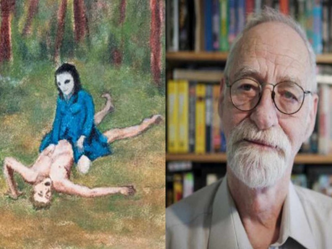 [La pintura] no es realmente tan buena. Ella estaba encima de mí, llegué a mi clímax, luego ella y el ser parecido al insecto se fueron”, dice. Pinturas similares llenan su apartamento. Son surrealistas, un poco infantiles, y las dominan azules y verdes profundos.