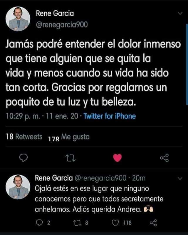 De acuerdo con el portal Actitud Fem, Andrea falleció desde el pasado 3 de enero, sin embargo fue hasta días después que se dio a conocer la noticia.