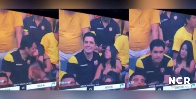 Y quién iba a imaginar que de entre 40 mil asistentes la cámara captaría a una pareja que parecía muy enamorada hasta que se dieron cuenta de que estaban en la pantalla, siendo observados por todo el estadio.