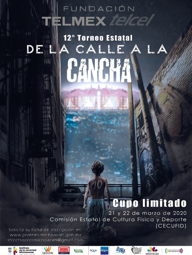 Continúan abiertas las inscripciones para participar en el 12 Torneo de Fútbol de la Calle a la Cancha, encuentro deportivo organizado por el Instituto de la Juventud Michoacana (Ijumich), en colaboración con Fundación Telmex-Telcel, con el objetivo de brindar a las y los jóvenes michoacanos la oportunidad de participar en torneos de fútbol a nivel nacional e internacional.