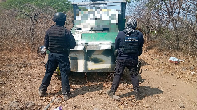 Elementos de la Policía Michoacán, del Ejército Mexicano y de la GN, realizaban labores de vigilancia para la disuasión del delito en la localidad La Palmita, cuando en una brecha ubicaron tres unidades, de las cuales, una cuenta con blindaje hechizo y existen indicios que los relacionan en actividades ilícitas.