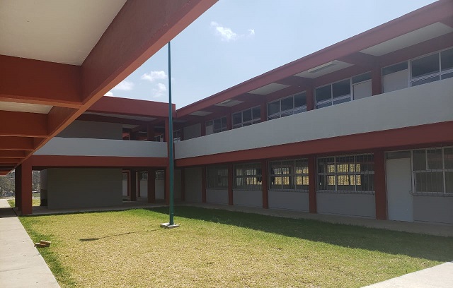La construcción del centro educativo se realizó en varias etapas, hoy cuenta con 12 aulas didácticas, puente, escaleras, plaza cívica, servicios sanitarios y laboratorios de usos múltiples e informática, así como obra exterior, fosa séptica, cisterna y bodega, subrayó.