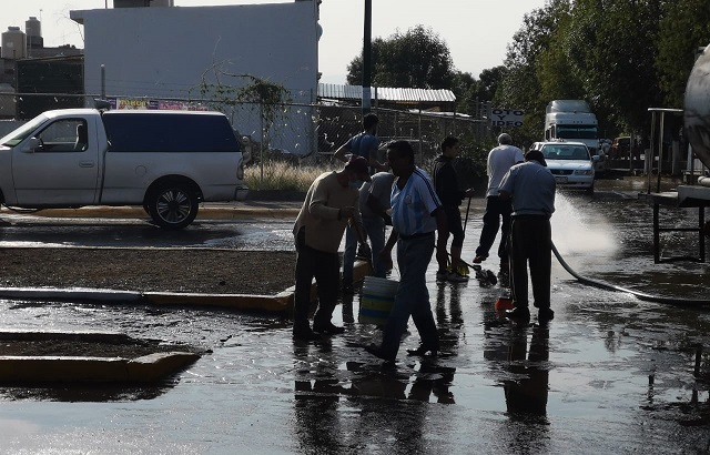 Miembros de la Unión de Comerciantes de Villas del Pedregal 2, en conjunto con empleados del Ayuntamiento de la Dirección de Mercados, perteneciente a la Secretaría de Servicios Públicos de Morelia, se dieron cita en la avenida esta mañana para participar en una jornada de limpieza, como parte de las medidas preventivas por el COVID-19.