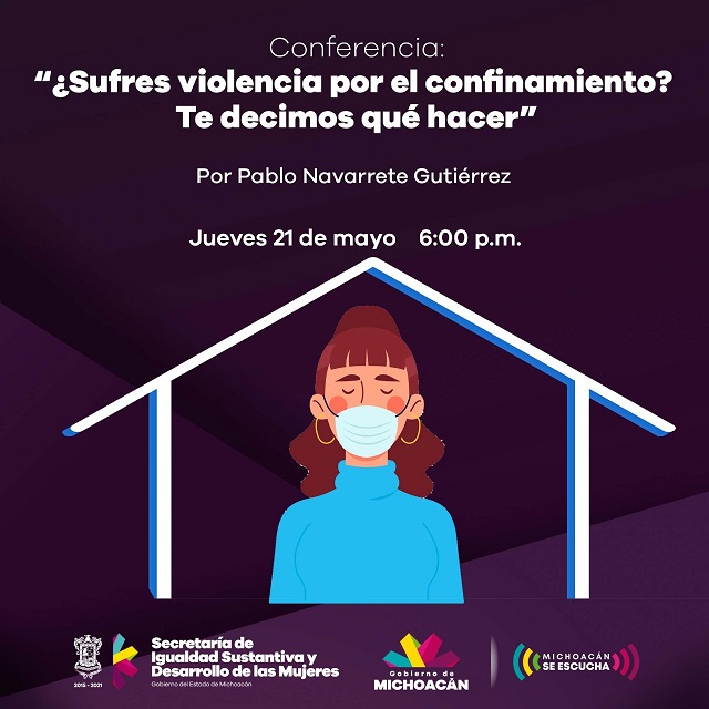 El aislamiento social por COVID-19, ha convertido los hogares de muchas mujeres en sitios peligrosos para ellas, sus hijos e hijas; por ello, como parte de las medidas de prevención establecidas en el Protocolo de Atención se realizará la conferencia “¿Sufres violencia por el confinamiento?”.