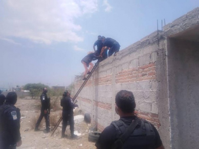 Con el apoyo de una escalera y de elementos de la Secretaría de Seguridad Pública Municipal de San Juan del Río, Querétaro, una mujer y su hija lograron saltar una de las bardas de su domicilio para escapar de la violencia intrafamiliar de que eran víctimas a manos del padre de familia.