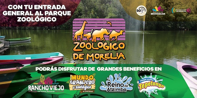 Se guarda tu boleto de entrada del zoológico de Morelia porque con él se podrán obtener grandes descuentos: 2×1 en la entrada Tepetongo; acceso al “Reino de Atzimba” por tan solo $70.00; 2×1 en la entrada a “Rancho Viejo” y 2×1 en el acceso al “Mundo granjero”.