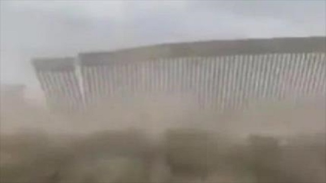 Los fuertes vientos y la lluvia de la tormenta debilitaron la estructura de la valla que divide ambos países.