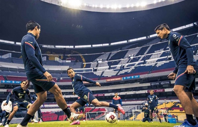 Las Águilas del América entrenaron ayer en la cancha del Estadio Azteca, con la principal idea de probar el nuevo alumbrado, que generó varias críticas tras el regreso de la actividad de la Liga MX en el Coloso de Santa Úrsula.