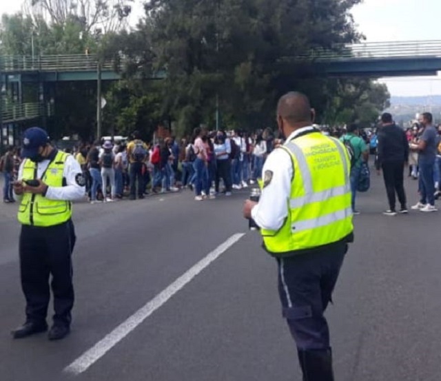 A la par, los agentes de seguridad llevan a cabo labores viales para contribuir al flujo vehicular de la zona.
