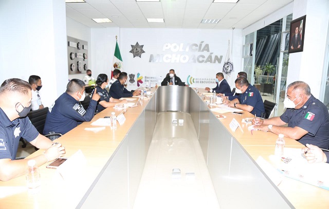 El subsecretario de la institución, Ricardo Delgado Castellanos sostuvo un encuentro con mandos de la Policía Michoacán y de la División Estatal de Caminos, a fin de revisar revisar los trabajos que se han llevado a cabo en los 16 municipios de la Región.