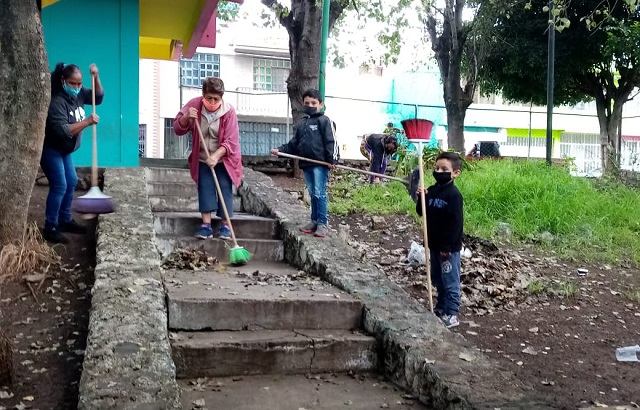 De esta manera, a través de la Dirección de Residuos Sólidos, se llevó a cabo una jornada de limpieza este fin de semana en la colonia La Colina, lugar en donde se realizó la poda de áreas verdes y barrido de estacionamientos y canchas deportivas.