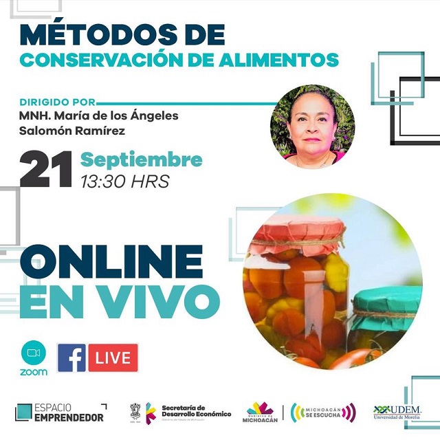 El primer tema enfocado al área de comercialización será ofrecido el lunes 21; “Métodos de conservación de alimentos”, estará a cargo de la maestra en Nutrición Humana, María de los Ángeles Salomón Ramírez.