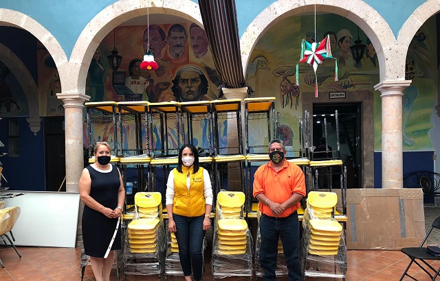 “Sabemos que este mobiliario era una necesidad en las escuelas beneficiadas y que cuando las niñas, niños y jóvenes regresen a las escuelas, les darán un buen uso”, apuntó la funcionaria.