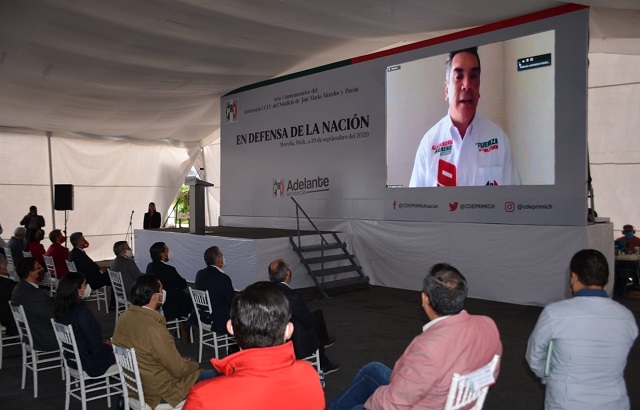 En su mensaje para Michoacán a través de la plataforma digital Zoom y en el marco de los festejos del natalicio del Siervo de la Nación, Alejandro Moreno, subrayó que el partido es un aliado del pueblo y de sus causas y nació para construir el mejor México por ello trabaja para que existan las condiciones adecuadas para enfrentar el proceso electoral 2021.