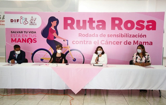 La Presidenta Honoraria del DIF Morelia, Rosalva Vidal Pérez, informó que parte de la campaña de sensibilización consiste en la entrega de 66 prótesis externas a mujeres que han pasado por el proceso de mastectomía; así como de realización de la Ruta Rosa, la cual tiene como finalidad motivar a la activación física, ya que es parte importante de la prevención del Cáncer de Mama.