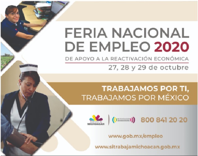 Con la participación de 51 empresas de todo el estado que ofertan 750 vacantes de diversos perfiles, se llevará a cabo de manera virtual la Primera Feria Nacional de Empleo, del 27 al 29 de octubre.