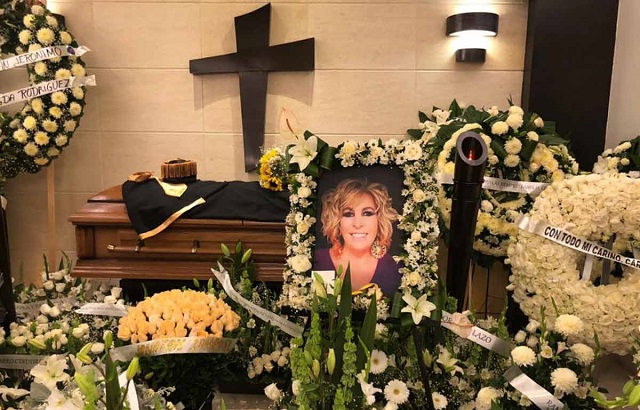 Decenas de arreglos florales rodean el féretro en que descansan los restos de la productora Magda Rodríguez.