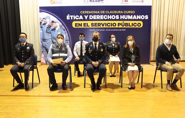 El Instituto Estatal de Estudios Superiores en Seguridad y Profesionalización Policial del Estado de Michoacán (IEESSPP) y la Comisión Estatal de los Derechos Humanos clausuraron el curso “Ética y Derechos Humanos en el Servicio Público”, dirigido a funcionarios públicos.