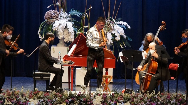 Horacio Franco, con su ensamble Capella Barroca deleitó al público del Teatro Ocampo durante la apertura.