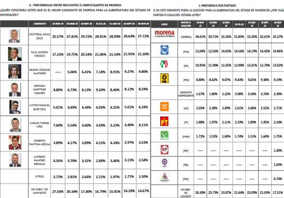 Como se observa, están a la cabeza los punteros CRISTÓBAL ARIAS SOLIS y RAÚL MORÓN OROZCO, sacando a su más cercano perseguidor que es el senador GERMÁN MARTÍNEZ CÁZARES, el doble MORÓN y casi el triple CRISTÓBAL, de manera que por donde le vean, la decisión morenista deberá estar entre esos dos aspirantes, bueno, si se impone la lógica política.
