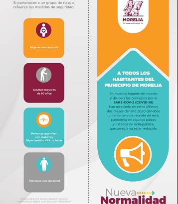 Por lo tanto, al igual que lo hizo a nivel nacional el presidente de México, Andrés Manuel López Obrador, compartió a los morelianos las siguientes recomendaciones: evitar salir del hogar si no es necesario y en caso de hacerlo priorizar las medidas de sana distancia, no realizar fiestas o reuniones numerosas, convivir únicamente en las fiestas con aquellos que habitan el mismo domicilio y finalmente, en el caso de que alguna persona presente síntomas, realizarse la prueba y acudir a su centro de salud para recibir la debida atención.