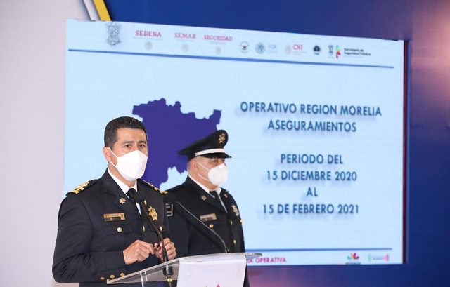 Las acciones implementadas a través del Operativo Conjunto Morelia permitieron que, del 15 de diciembre de 2020 al 15 de febrero de 2021, se diera una disminución en los delitos de alto impacto, homicidios, robo a vehículos, casa-habitación, comercios, transeúntes, y se destruyeran 35 mil plantas de mariguana, informó el secretario de Seguridad Pública del Estado de Michoacán (SSP), Israel Patrón Reyes.