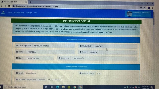 Conforme a las disposiciones generales de la convocatoria, todos los trámites (solicitud de ingreso, carga de documentos, descarga de órdenes de pago, seguimiento de trámite) se realizarán únicamente a través del portal institucional www.imced.edu.mx; deberán ser realizados por el interesado y en caso que el aspirante proporcione información falsa, dará lugar a la cancelación del proceso de admisión.