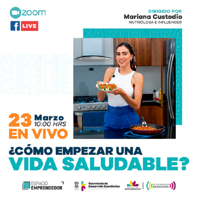 El martes 23 de marzo a las 10 horas, Mariana Custodio ofrecerá la charla ¿Cómo empezar una vida saludable?, a través de la plataforma Zoom, así como por Facebook Live desde la cuenta de Espacio Emprendedor.