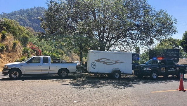 Elementos de la Policía Michoacán ubicaron a la altura del entronque Tzitzio-Temazcal al implicado, cuando circulaba a bordo de un automotor de la marca Ford con un remolque, mismo que, al verificar sus antecedentes, arrojó reporte de robo.