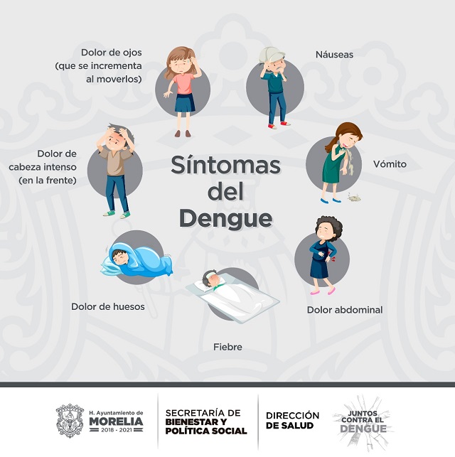 Bajo la premisa de concientizar a la ciudadanía respecto a la picadura y posterior padecimiento del dengue, la Dirección de Salud Municipal emite el cuadro sintomatológico de dicha enfermedad para que las y los morelianos tomen precauciones y vigilen su integridad durante la temporada.