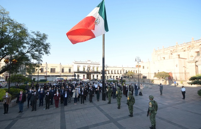 Esta mañana el Gobierno de Morelia llevó a cabo el izamiento de bandera nacional en la plaza Melchor Ocampo conmemorando el CXXVI Aniversario del Natalicio del General Lázaro Cárdenas del Río. Se realizó el depósito de la ofrenda floral y guardia en el obelisco y monumento que se erigió en su memoria, en donde se le rindieron los honores correspondientes.