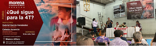 Por lo pronto, ya en Michoacán hizo acto de presencia el ex coordinador nacional de los súper delegados del bienestar y ahora senador de la república GRABRIEL GARCÍA HERNÁNDEZ, quién dictó una “conferencia” denominada “¿QUÉ SIGUE PARA LA 4T?” en el Salón Yunuen de Paracho, este domingo a las 11 de la mañana, a la que acudieron sus “allegados” y otros colados más.