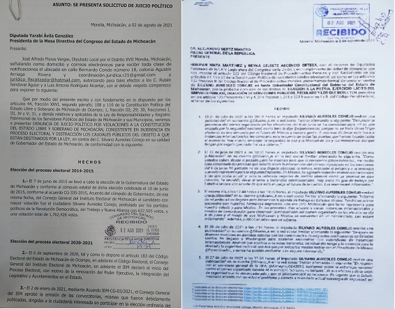 “DENUNCIA DE JUICIO POLÍTICO POR VIOLACIONES A LA CONSTITUCIÓN POLÍTICA DEL ESTADO LIBRE Y SOBERANO DEL ESTADO DE MICHOACÁN A OCAMPO, CONSISTENTE EN INGERENCIA EN PROCESO ELECTORAL Y DISTRACCIÓN DE LOS CUDALES PÚBLICOS DEL OBJETO A QUE ESTÁN DESTINADOS POR LA LEY”