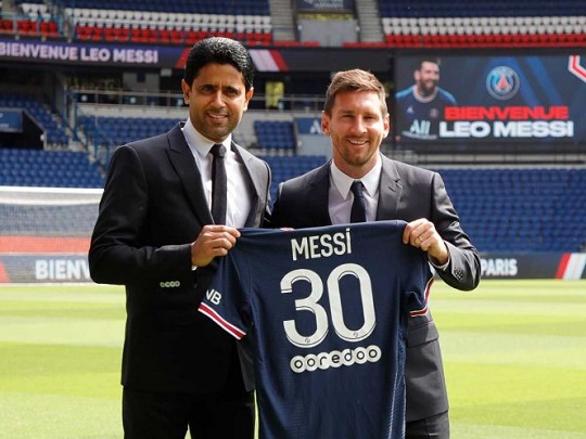 Al Khelaifi: “Estoy muy contento de tener a Messi aquí. Es un día histórico para el club y para el mundo del futbol. Es un honor para el PSG tener un jugador como Messi, con seis Balones de Oro. Los fans están muy emocionados de ver a Messi. Es algo espectacular, no tengo palabras lo que representa para el club tener a Messi en la plantilla. Si hace 10 años nos hubieran dicho que estaría aquí, no lo hubiéramos creído. Tenemos al mejor jugador del mundo. Muchas gracias Leo”.