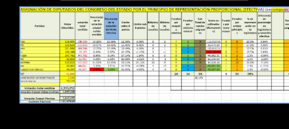 Lo anterior, implica que la diputación plurinominal del Verde se le quite y se le entregue a Fuerza por México y la del PRI al partido MORENA, quien mantiene la posibilidad de lograr una plurinominal más al encontrarse sub representado.