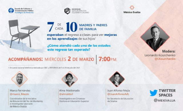 “Este ejercicio, desde una perspectiva crítica, fue realizado con el fin de mejorar las condiciones educativas del país y plantear posibles rutas estales a seguir para recuperar los conocimientos rezagados y dotar a los alumnos de mejores condiciones para la realidad post pandémica.” Marco Fernández – investigador de la IEEC y de México Evalúa.
