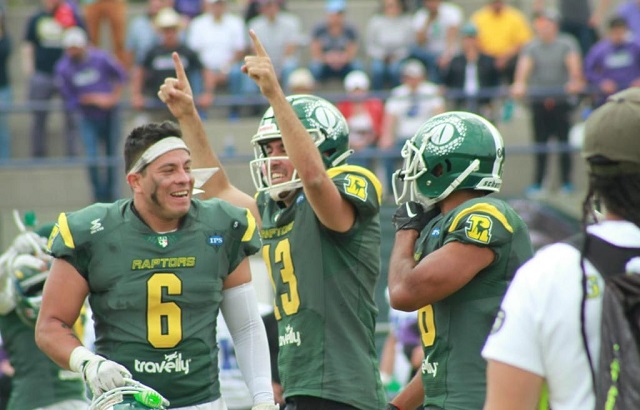 En la jugada previa Raptors se había acercado en el marcador y había optado por ir a buscar el empate con el punto extra. Pero Alexander Smith bloqueó la patada de Jorge Retana. Sin embargo, hubo un castigo y acercó algunas yardas más al equipo verde, que provocó cambio de estrategia para la búsqueda del triunfo en ese momento.