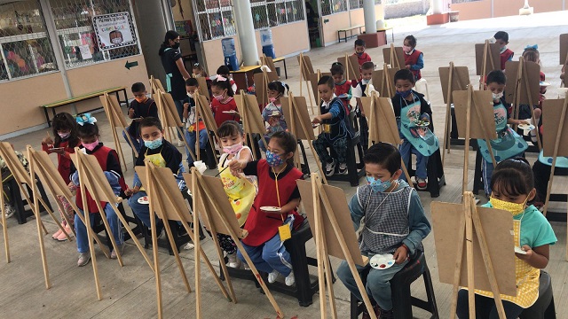 El Jardín de Niños Natalio Vázquez Pallares, de la colonia López Mateos, se llenó de arte, ilusión, imaginación, risas y mucha diversión con el Taller de Pintura gratuito que realizó en sus instalaciones la Secretaría de Cultura de Morelia (SeCultura), dependencia encabezada por Fátima Chávez Alcaraz.
