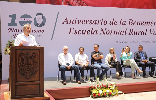 Al encabezar el acto de conmemoración del Centenario de la Escuela Normal Rural “Vasco de Quiroga” de Tiripetío, el gobernador Alfredo Ramírez Bedolla afirmó que su administración es aliada de los normalistas y docentes que, en conjunto, buscan desterrar procesos de corrupción y transformar el sistema educativo de la entidad.