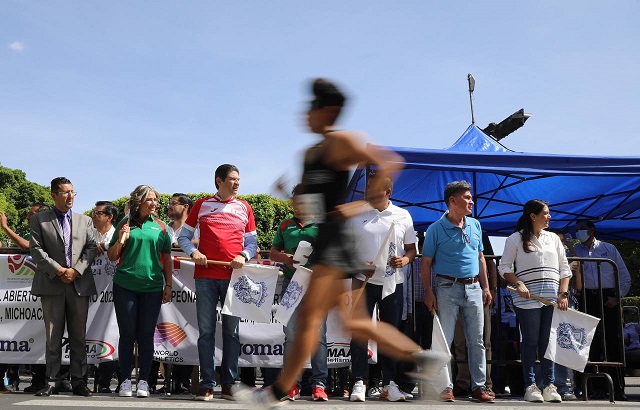 El presidente municipal de Morelia, Alfonso Martínez Alcázar, en compañía del titular de la Federación Mexicana de Asociaciones de Atletismo (FMAA), Antonio Lozano Pineda y la directora del Instituto Municipal de Cultura Física y Deporte (IMCUFIDE), Verónica Zamudio Ibarra, puso en marcha las actividades del Campeonato Nacional Abierto de Atletismo 2022, tras realizar el disparo de salida de forma simbólica, a la prueba de 20 y 35 kilómetros caminata, en un circuito trazado en el Centro Histórico de la capital del estado.